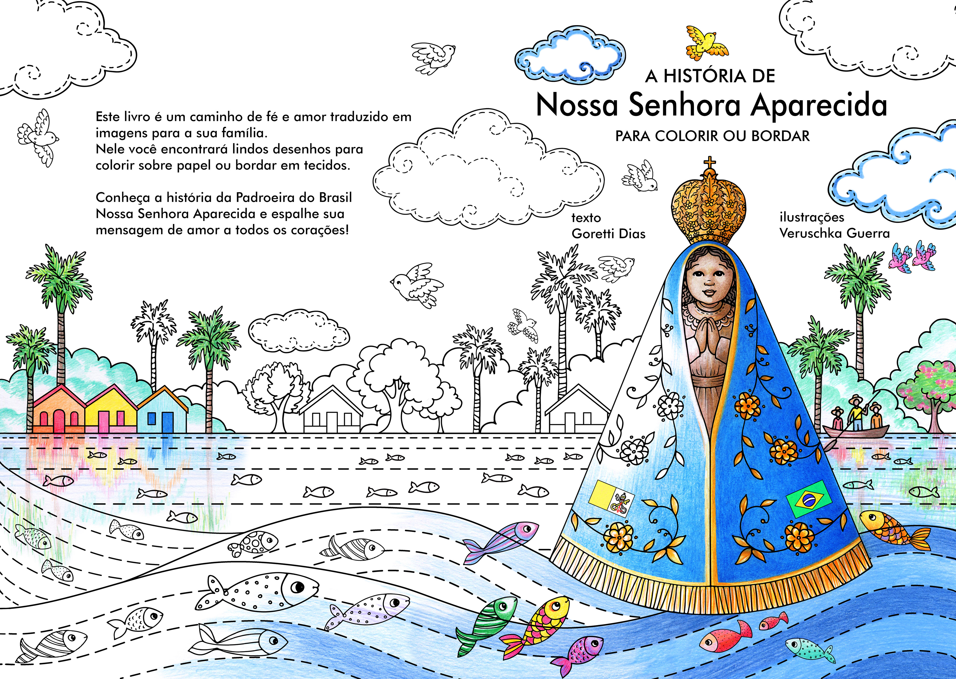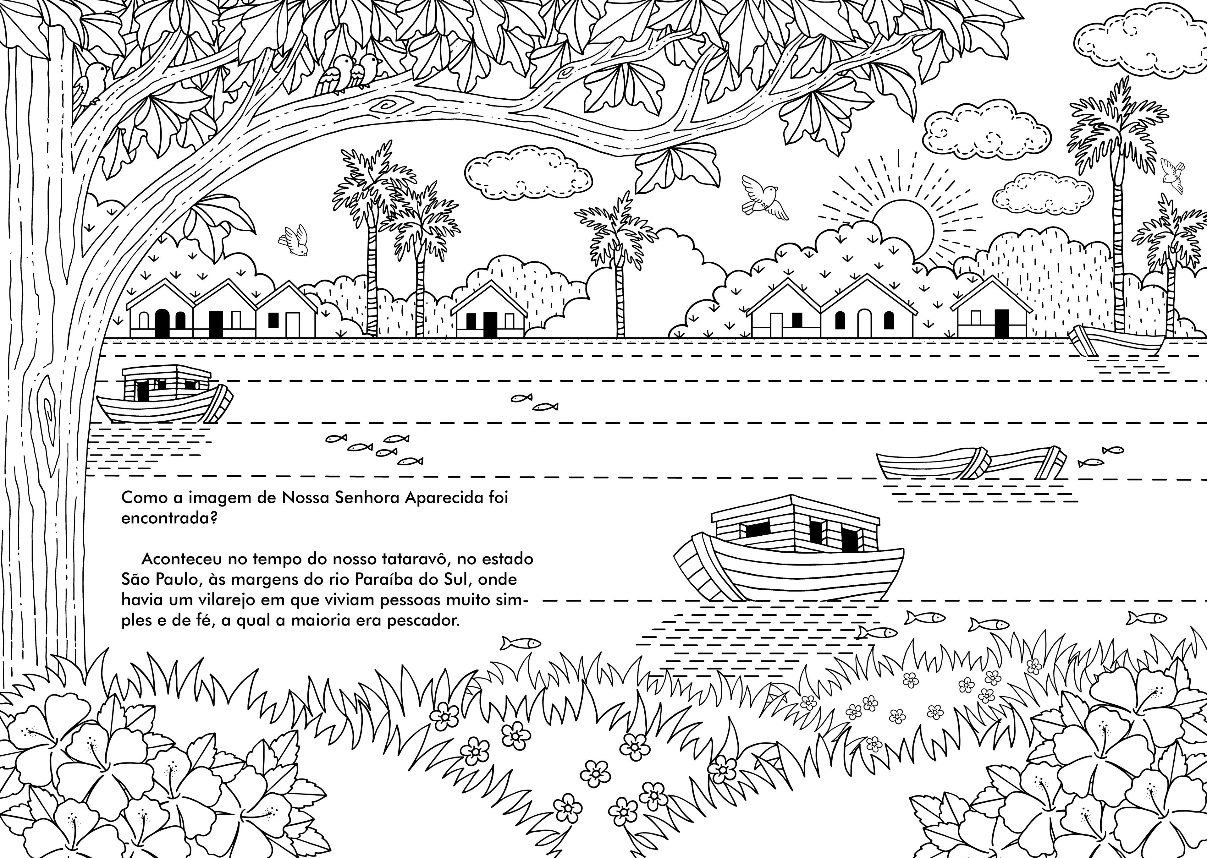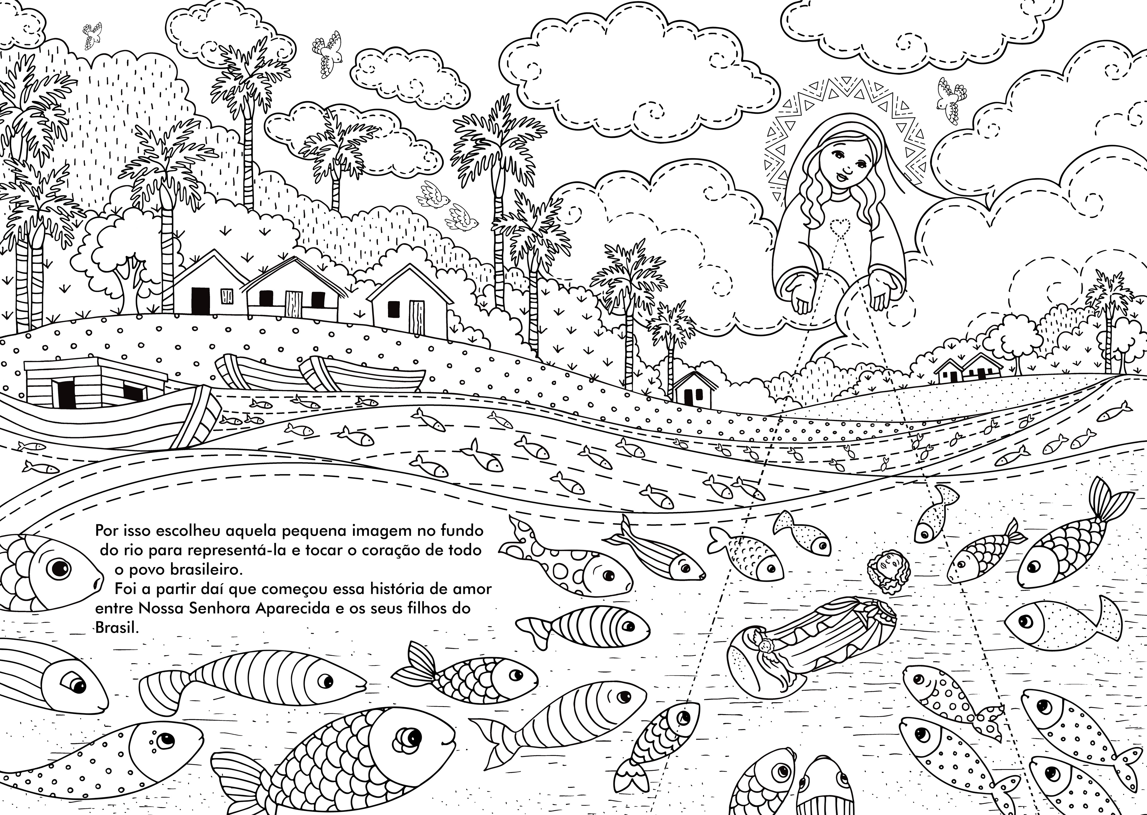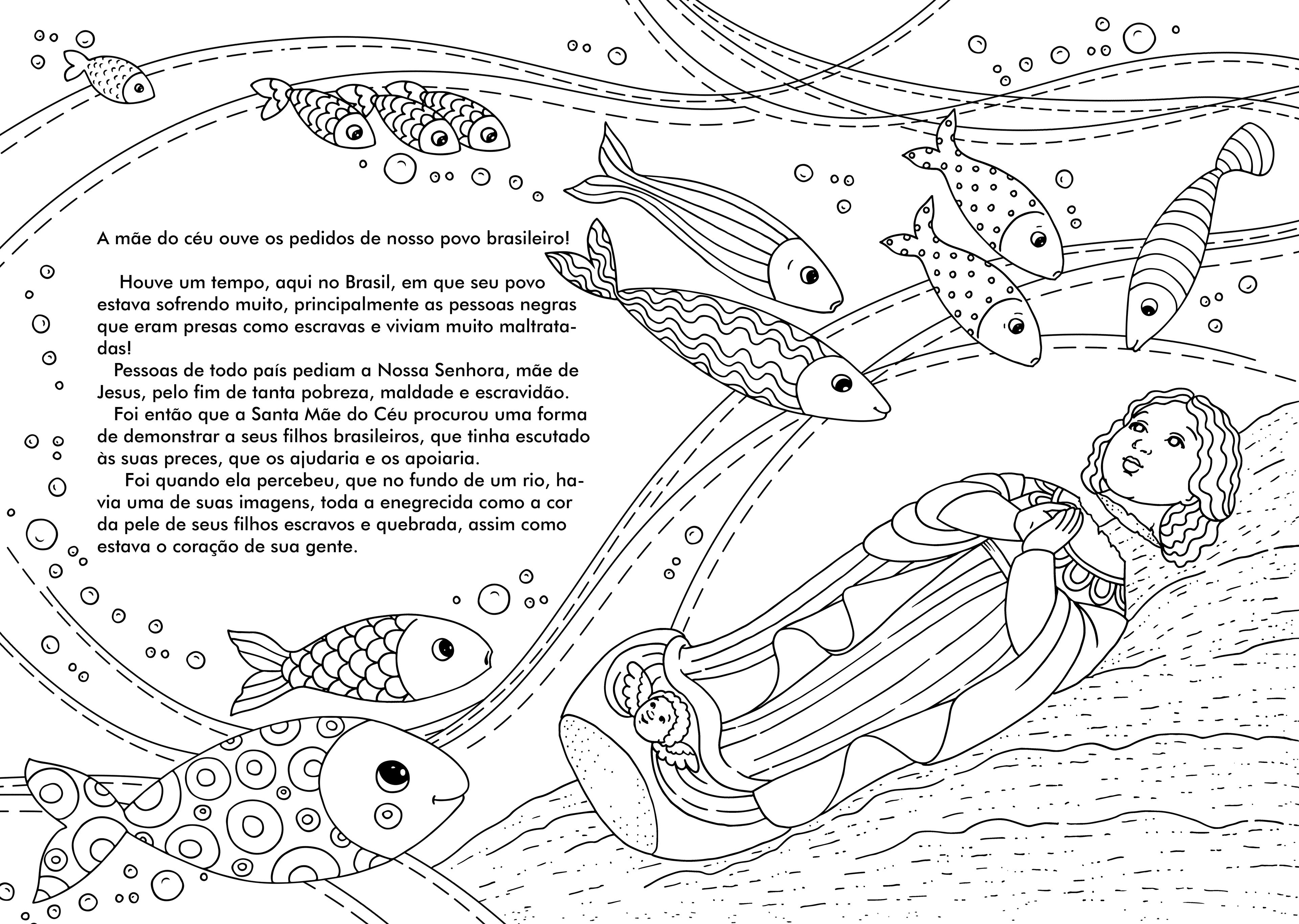 A história de Nossa Senhora Aparecida para colorir ou bordar