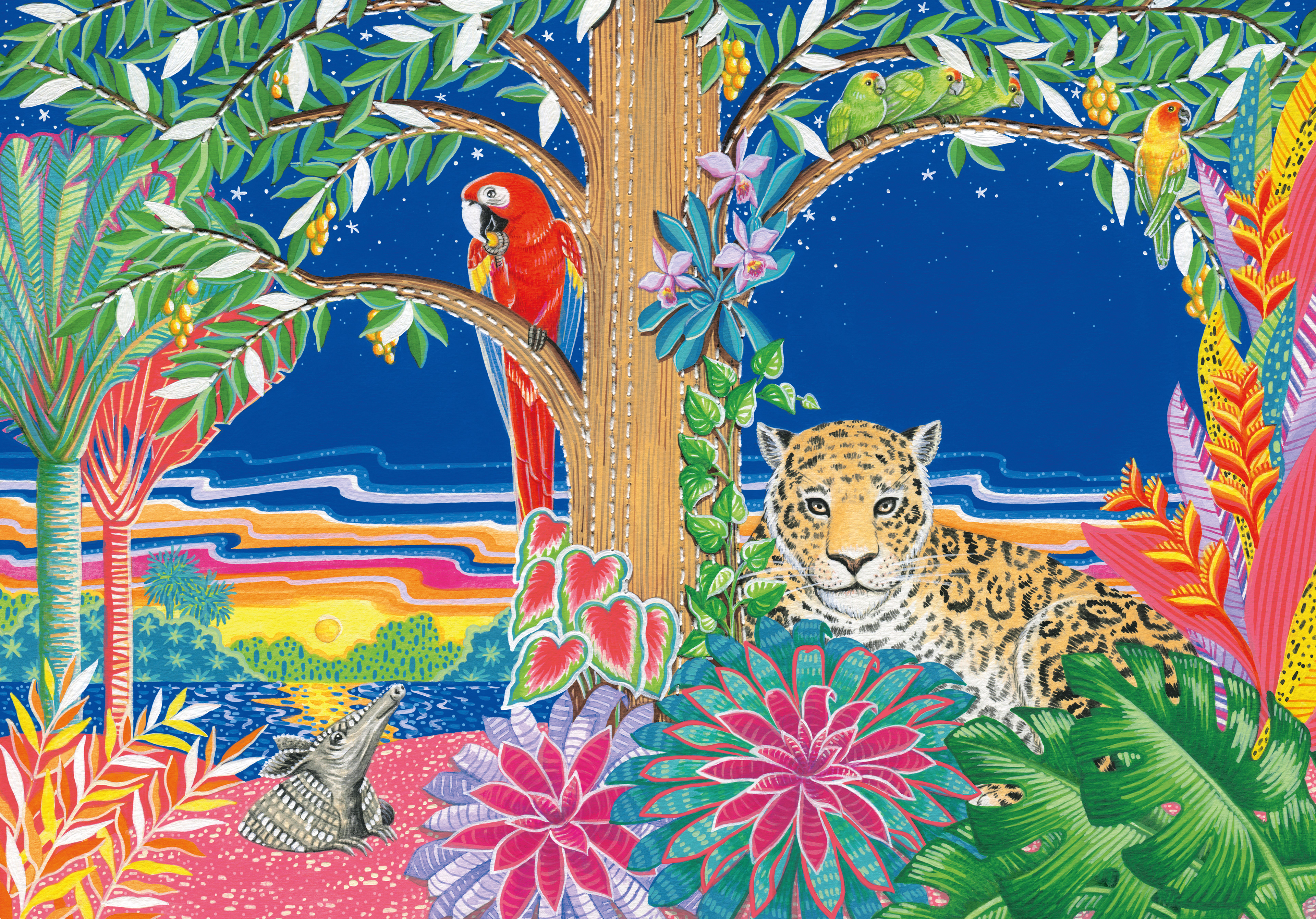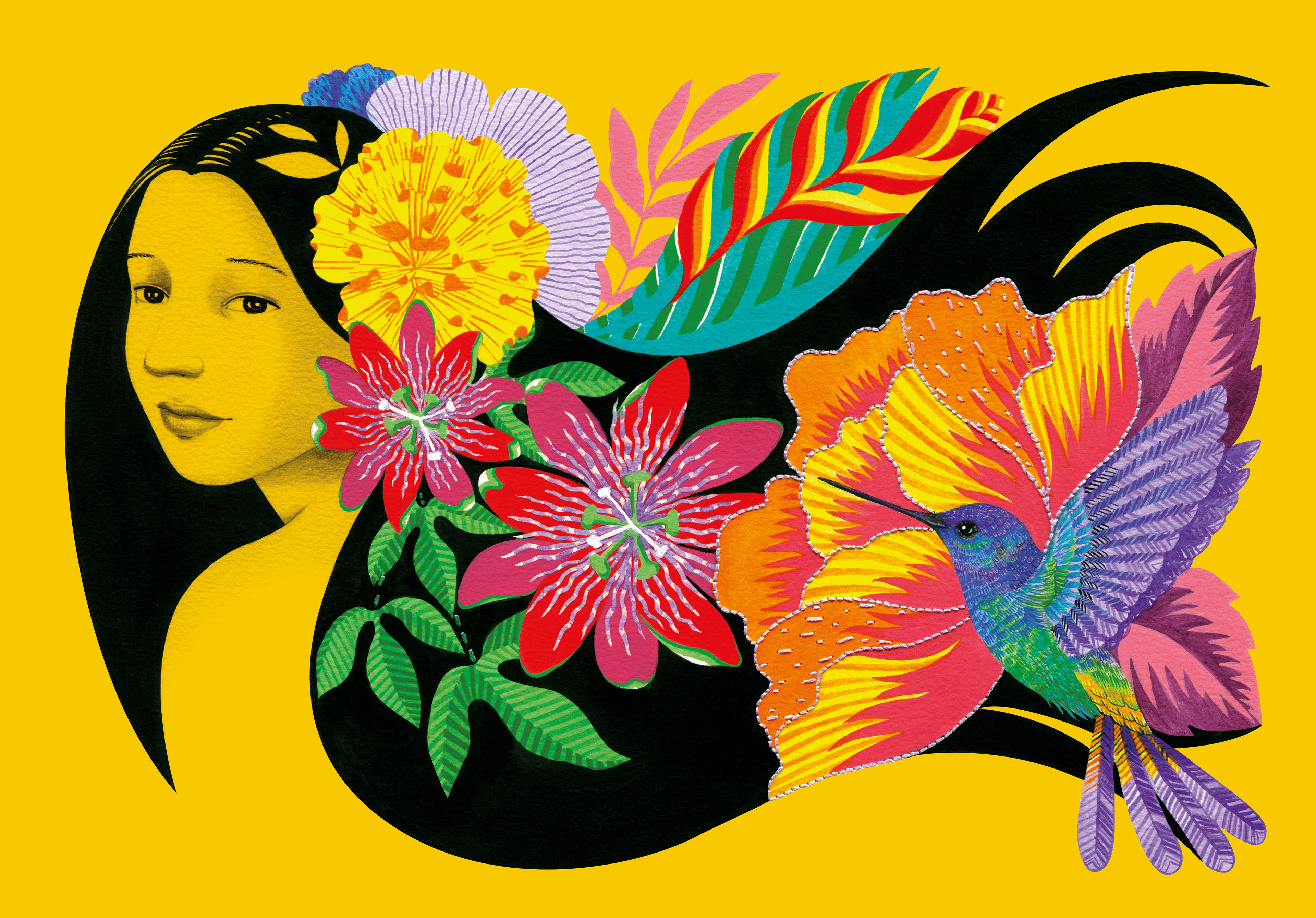 Dessa forma, a coloração saturada e o bordado se mesclam e definem a melhor maneira de representar a iridescência cultural proposta pela obra.
